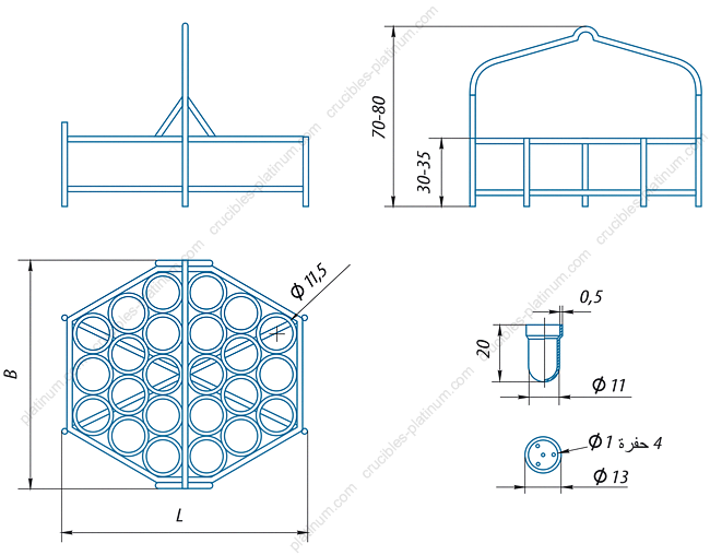 سلة مع بوتقات دقيقة بلاتينية للتحليل