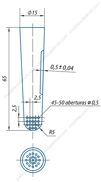 Crisoles cónicos de platino con fondo perforado. Artículo 113
