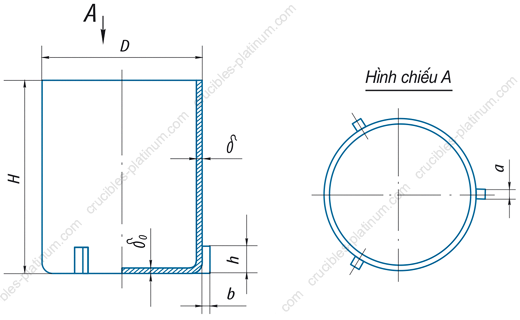 | Loại | Dung tích, cm3 | D, mm | H, mm | δ0, mm | δ, mm | a, mm | b, mm | h, mm | Trọng lượng, g |