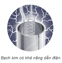 2 – chất cách điện hình ống thủy tinh có đường kính 1,5 mm (3 chiếc) được gắn bằng dây bạch kim có đường kính 0,3 mm.